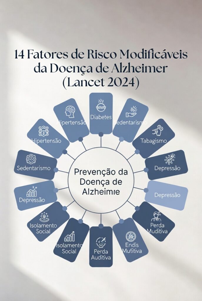 • Descubra como prevenir a doença de Alzheimer controlando 14 fatores modificáveis. Estratégias reais e acessíveis para cuidar da saúde cerebral na doença de Alzheimer.